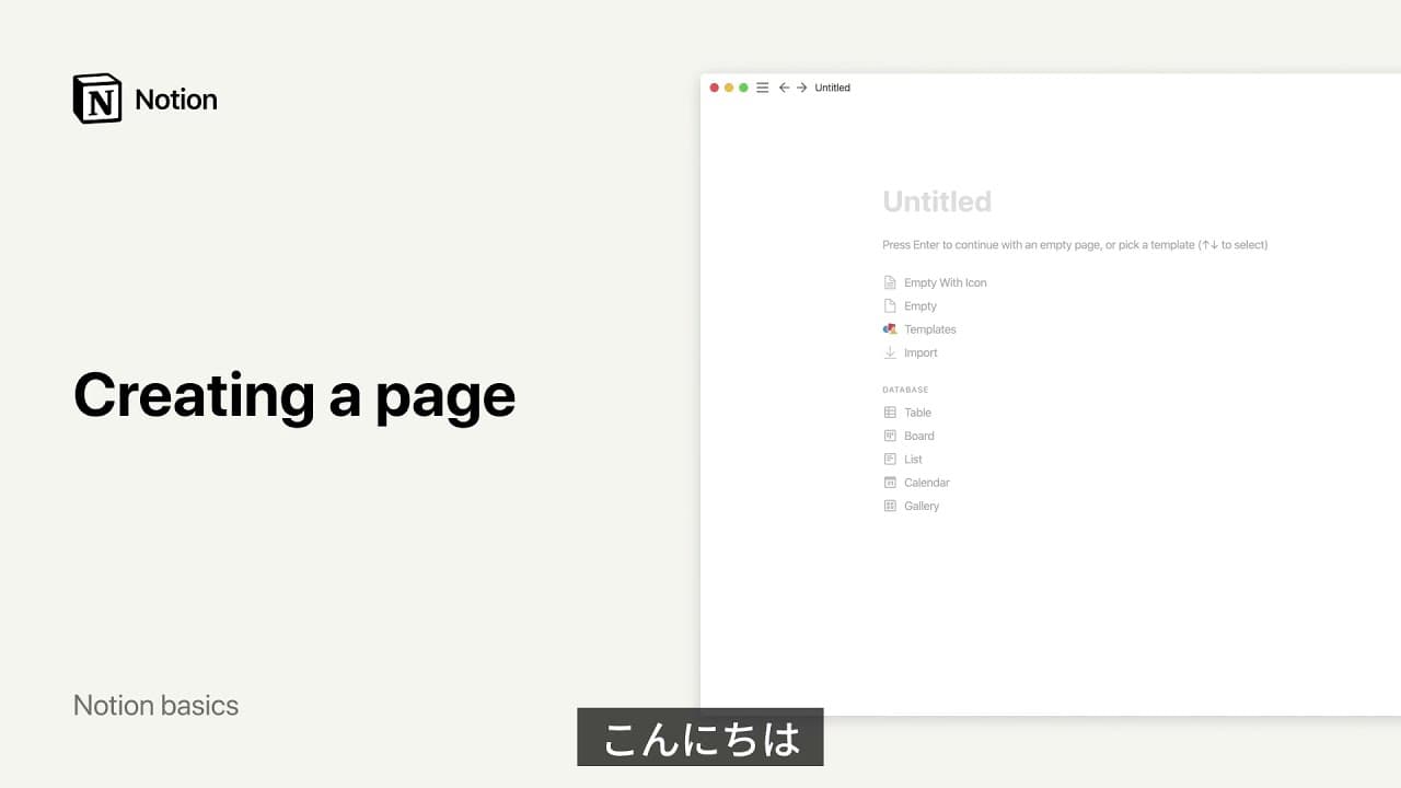 Notionで最初のページを作って入力を始めると、まずその入力している場所というのがテキストブロックになっています。Notionのページには、プレーンテキスト以外にも多くのコンテンツを含めることができます。