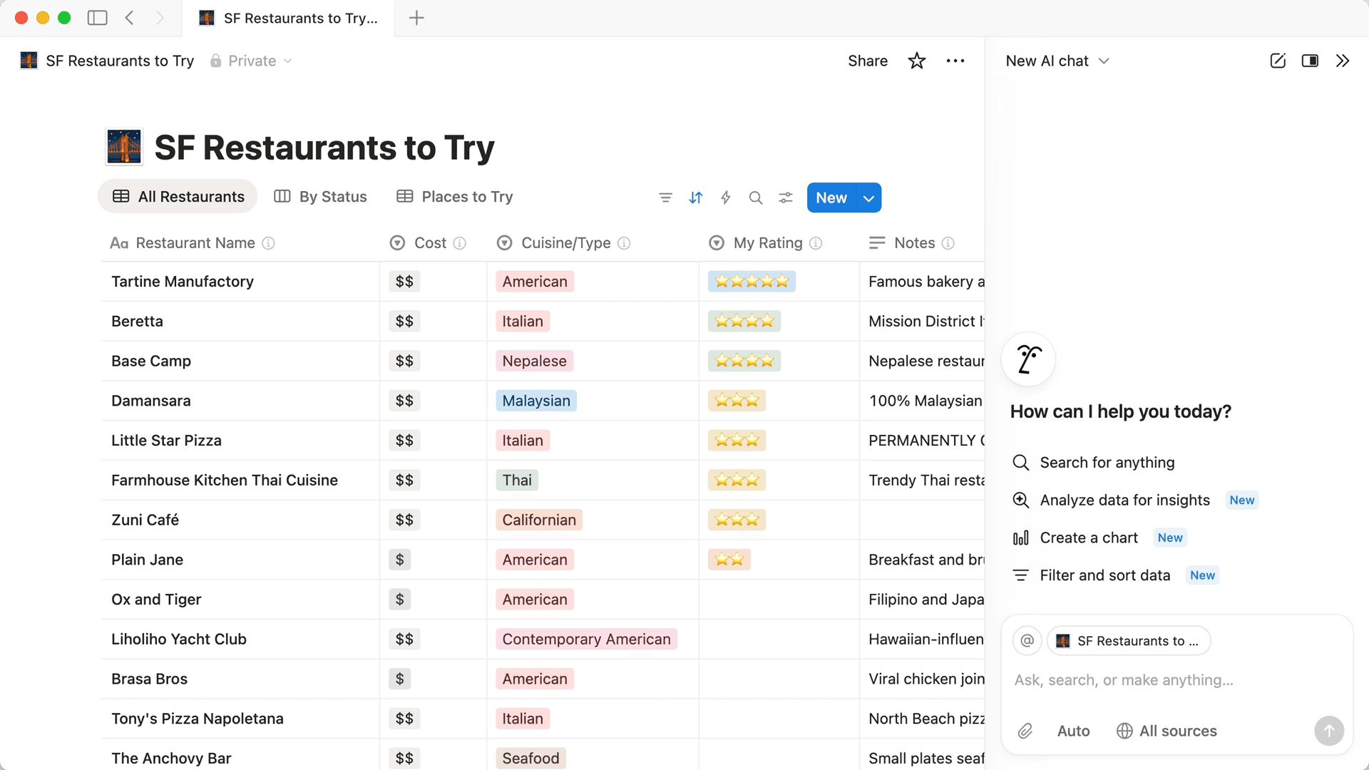 このコースの学習ガイドを作成しましょう。毎週の授業ノートを取れるデータベースを必ず含めてください!